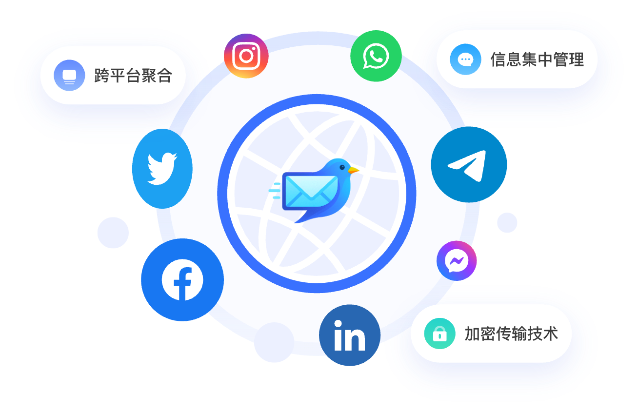內置全球主流社交平台,一站同步,滿足個人社交、商務協作、跨境溝通等場景,實現跨語言即時對話。