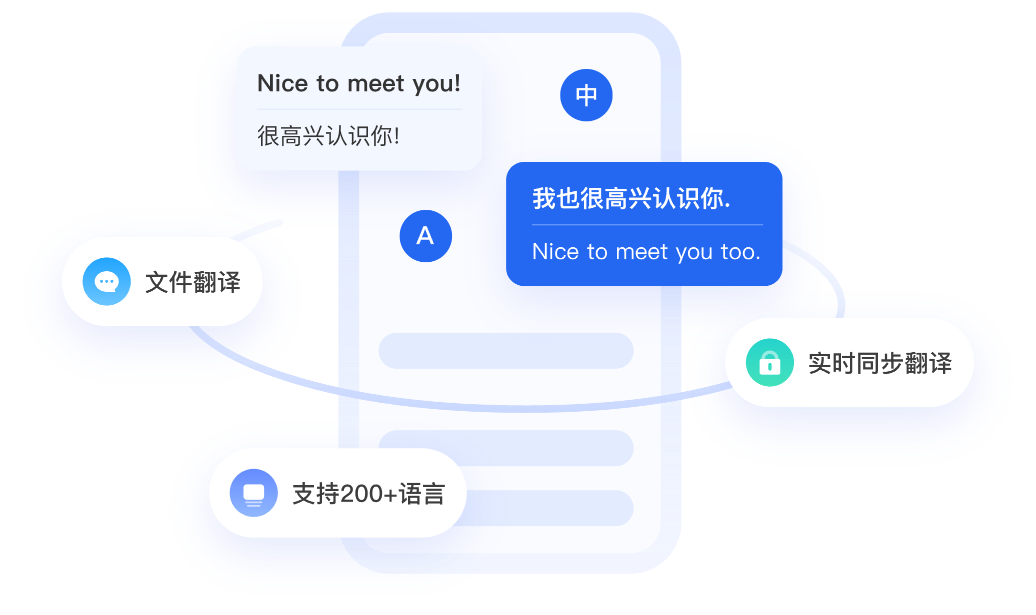 自研翻譯引擎對接 200+ 語種,支援文字、語音雙向即時互譯。