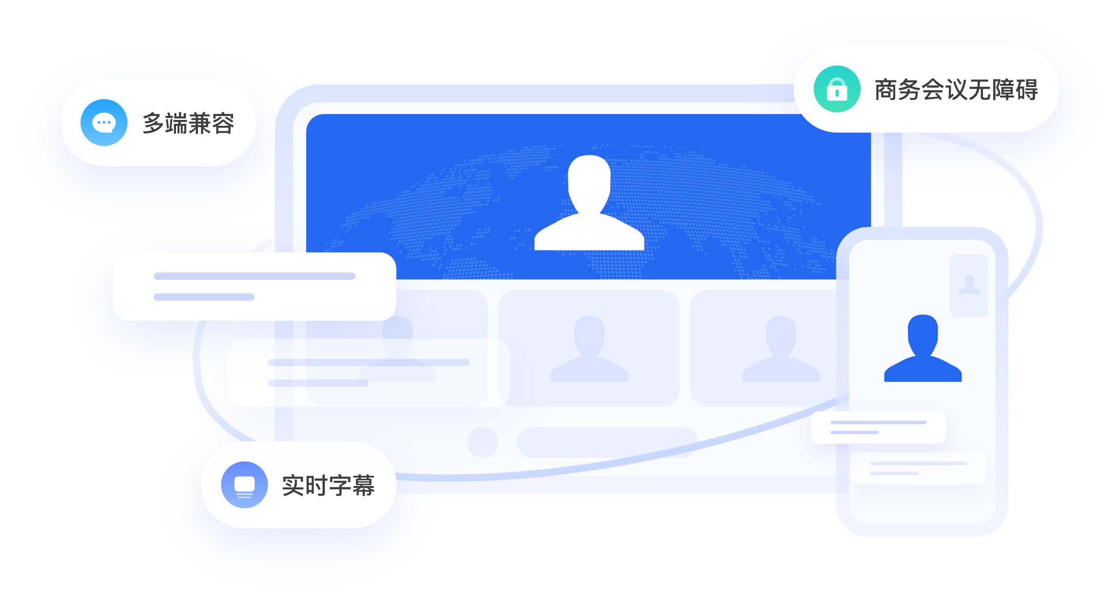 支援手機、電腦、網頁跨平台連動,隨時隨地加入會議,協作無縫銜接。